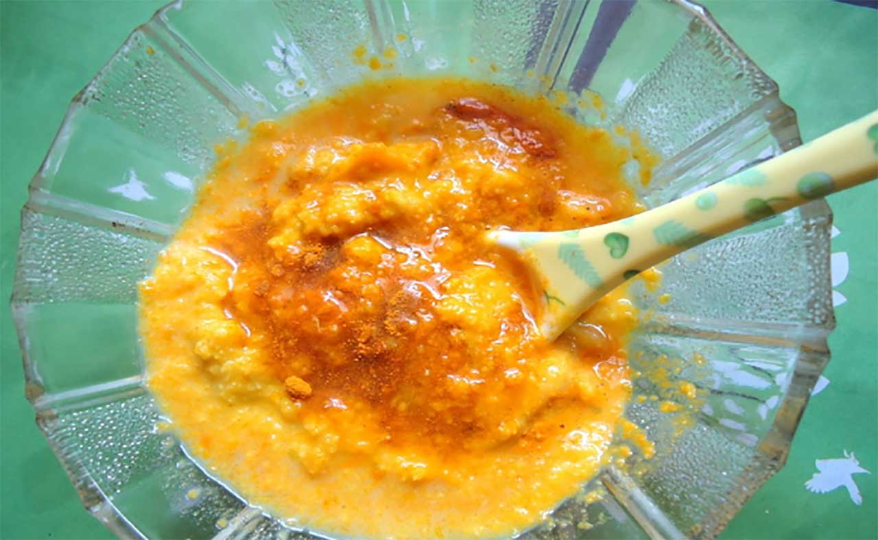 Make a cornstarch paste by adding water to 2 tablespoons of cornstarch powder and add 3 to 4 drops of coconut oil to the paste. Apply this paste to the sunburnt areas and leave it on for 30 minutes before washing it off.